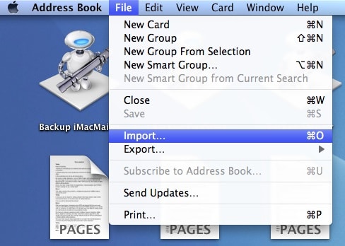 Once you’ve got your saved CSV document, you’ll want to begin by opening your Address Book application. Once you’ve activated the program, click “File” and scroll down to the “Import” option.