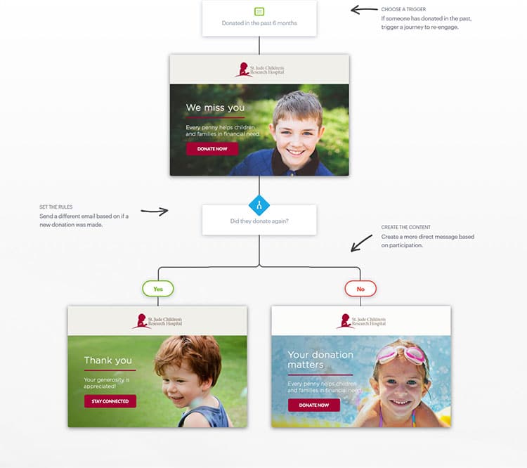 Customer journeys and triggered event emails will gently guide your new subscribers through a marketing cycle to help them learn about your brand and how you can help them.