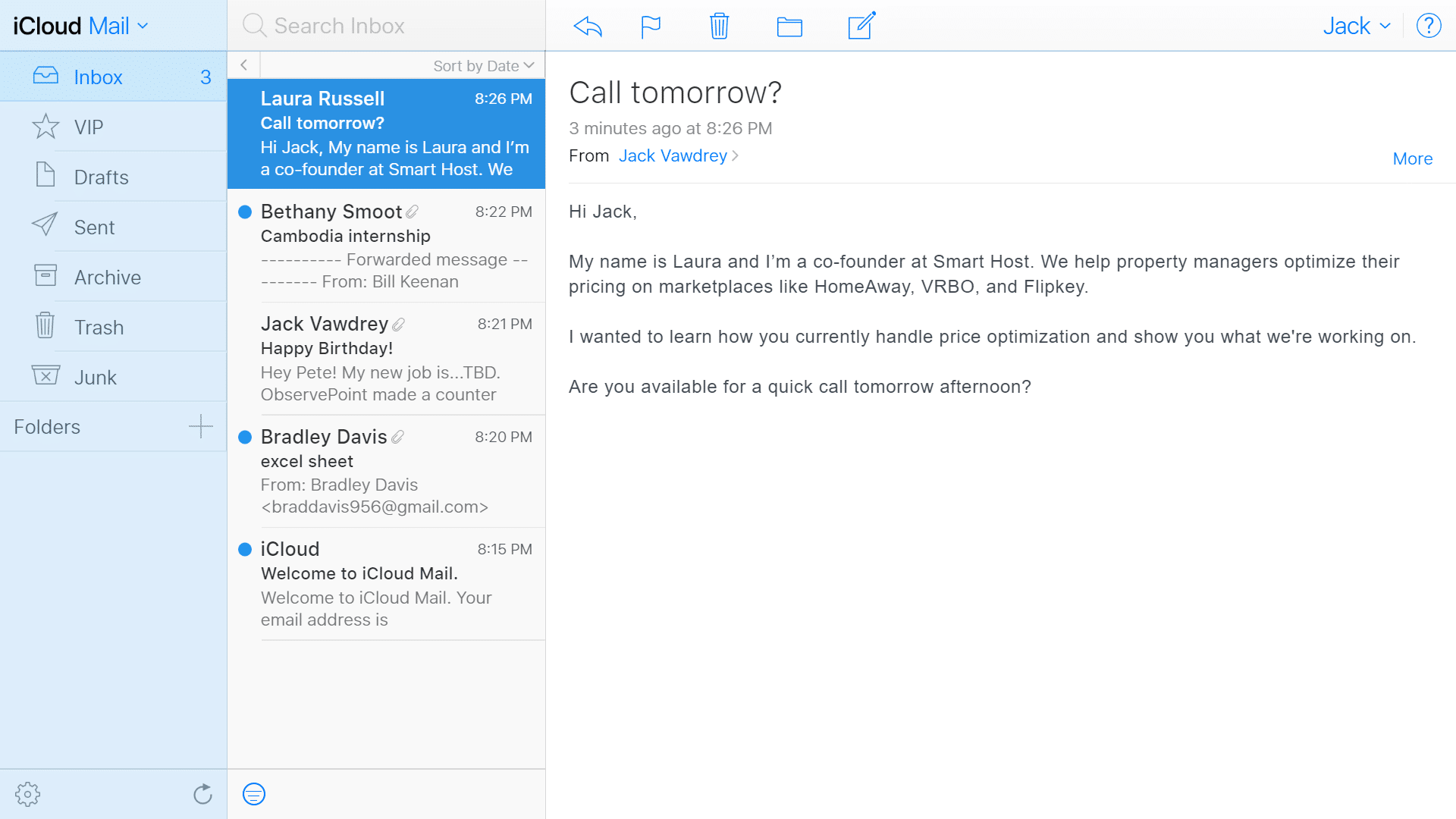 If you’re looking for a straightforward, user-friendly email service, iCloud Mail is worth considering. Below is a screenshot of the browser-based version of iCloud Mail.
