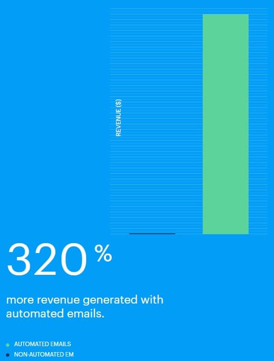 • Automation: Streamlining email creation isn’t just a way to save time; it’s a way to find what works and replicate it for continued returns. Automated emails generate 320% more revenue than non-automated emails.