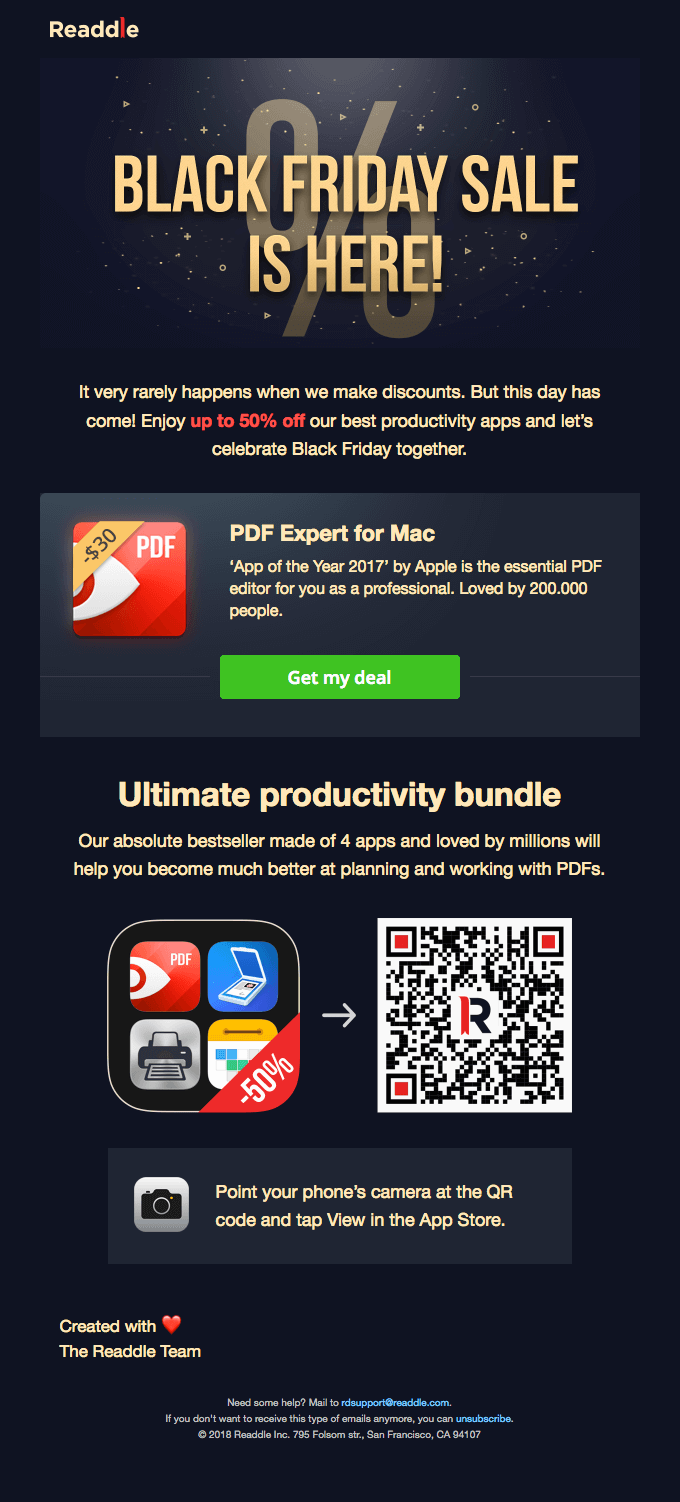 Sometimes, however, they’re appropriate. Consider this beautiful example of a Black Friday announcement.