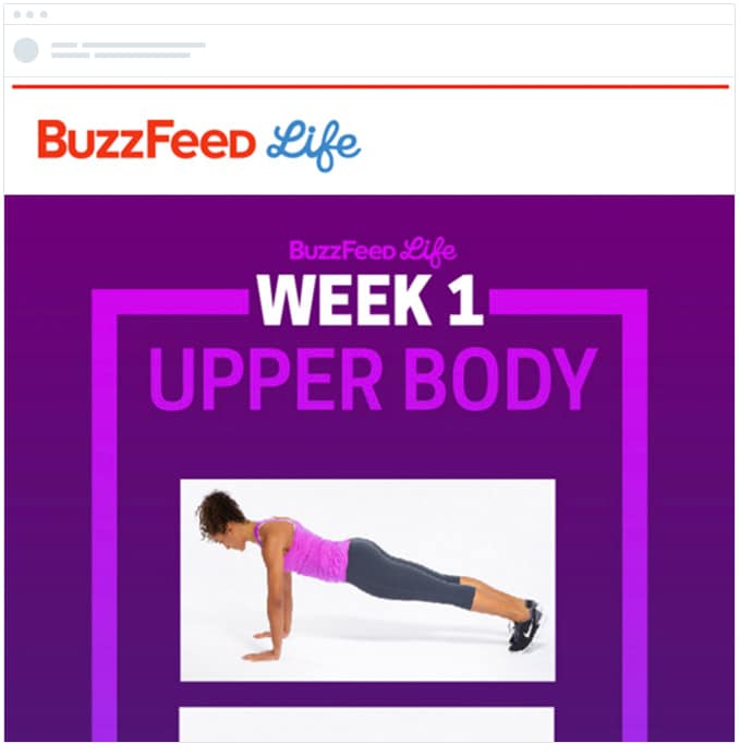 BuzzFeed also puts email automation to work. The site offers a four-week “Get Fit” class to subscribers. Each week, an email with a new workout routine gets delivered to subscribers’ inboxes.
