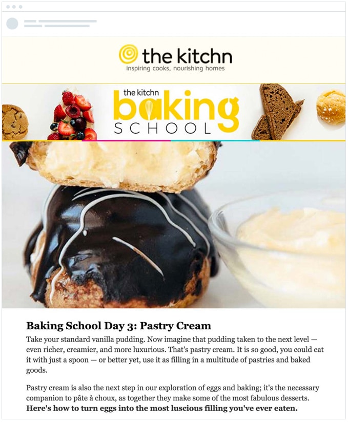 Apartment Therapy’s sister brand, the kitchn aims to inform and inspire every aspect of home cooking with recipes, lessons, product reviews, and kitchen design tips. They’ve seen massive success using email courses to share this type of content. These automated classes have open rates and click-through rates of over 50%, which means more and more subscribers are visiting their website and engaging with their brand.