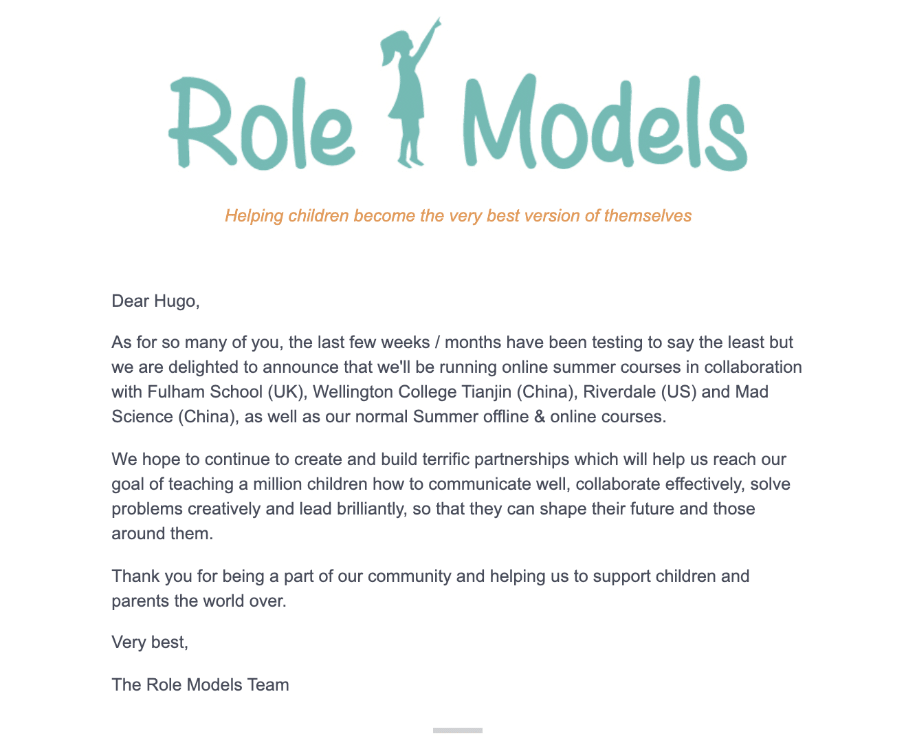 Together with Campaign Monitor, Role Models brings out the true potential of every child.