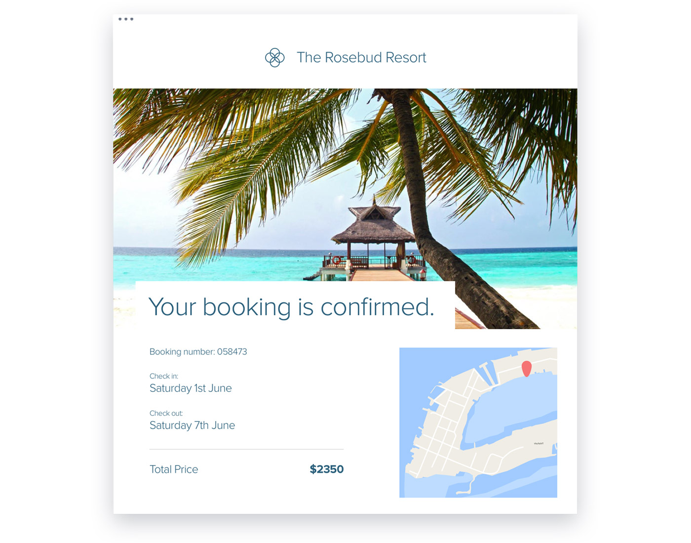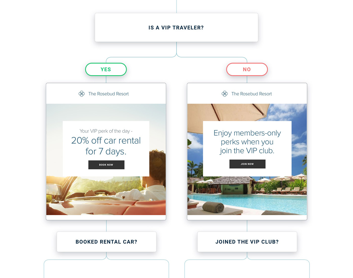 Create set-it-and-forget-it customer journeys that trigger after a hotel is booked, purchase is made, or guest becomes a VIP.