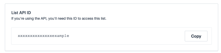 You can find any list ID via running the “Getting Subscriber Lists” method, or by heading into any list in your account and selecting Settings in the left menu. Scroll to the bottom of the page to find List API ID.