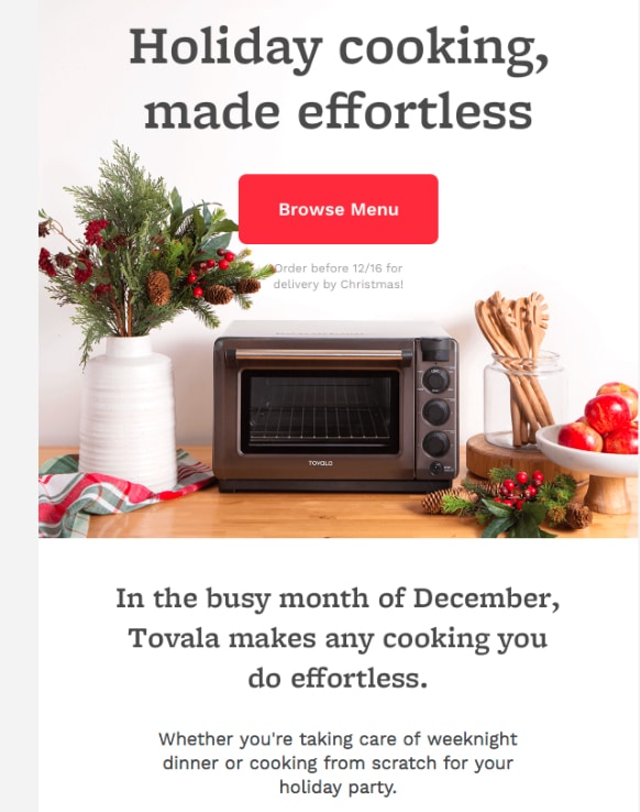 You’ll want to make sure to have a call-to-action button near the top of your email so users never miss it. It increases the scanability of your emails and calls attention to your main message or offer.