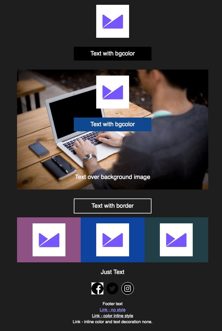 If you choose to use black text on a white background as an image, it is best to use a transparent PNG with a stroke around the text to match the background in the default light email: