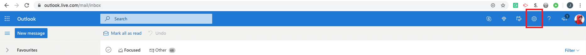 Create a free account and log into Outlook.com. In the top right, find the ‘Gear’ icon for settings: