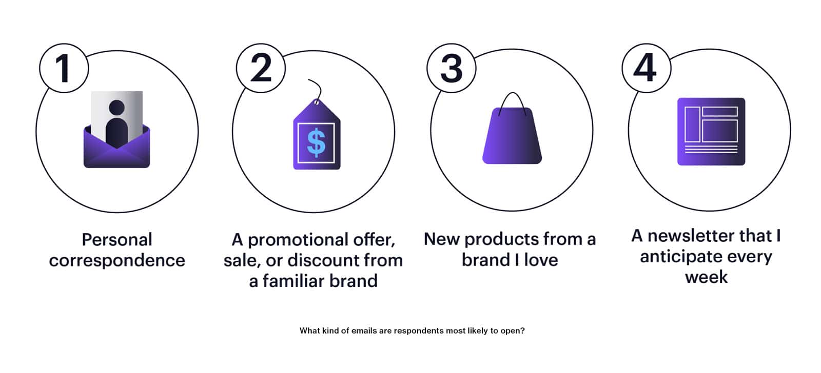 A recurring theme in this data is how much subscribers love a discount code, exclusive sale, or unique offer. In fact, that’s a contributing reason why a lot of people join email lists in the first place.