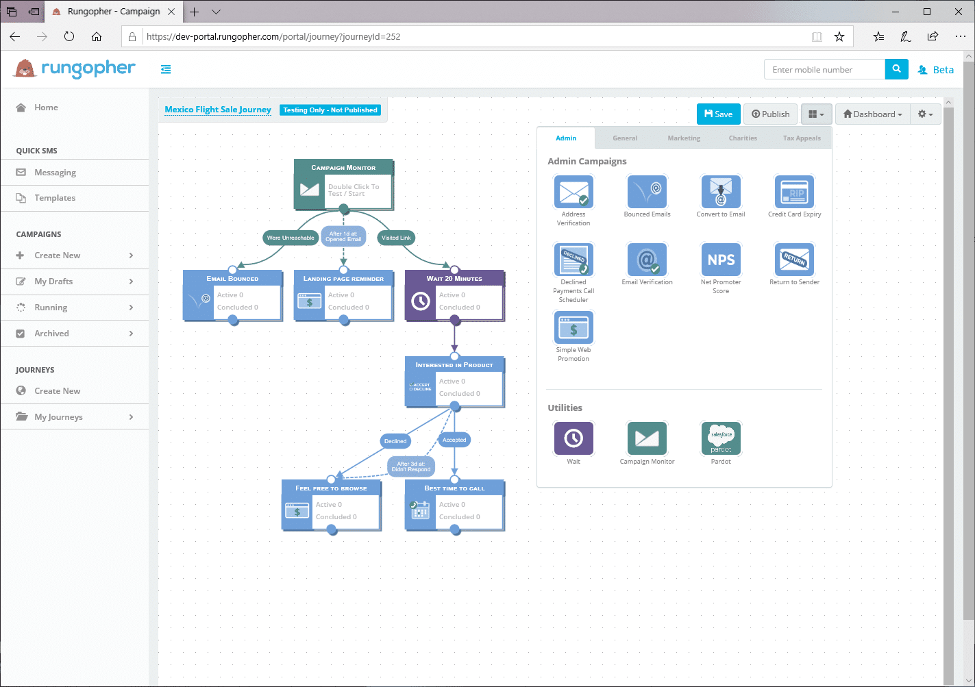 RunGopher is an SMS messaging marketing technology platform that enables brands to automate meaningful conversations to drive growth outcomes such as customer engagement, lead nurturing, event promotion, call center operations, call scheduling, web traffic campaigns, retention campaigns, web promotions, customer journeys, NPS surveys, and more.