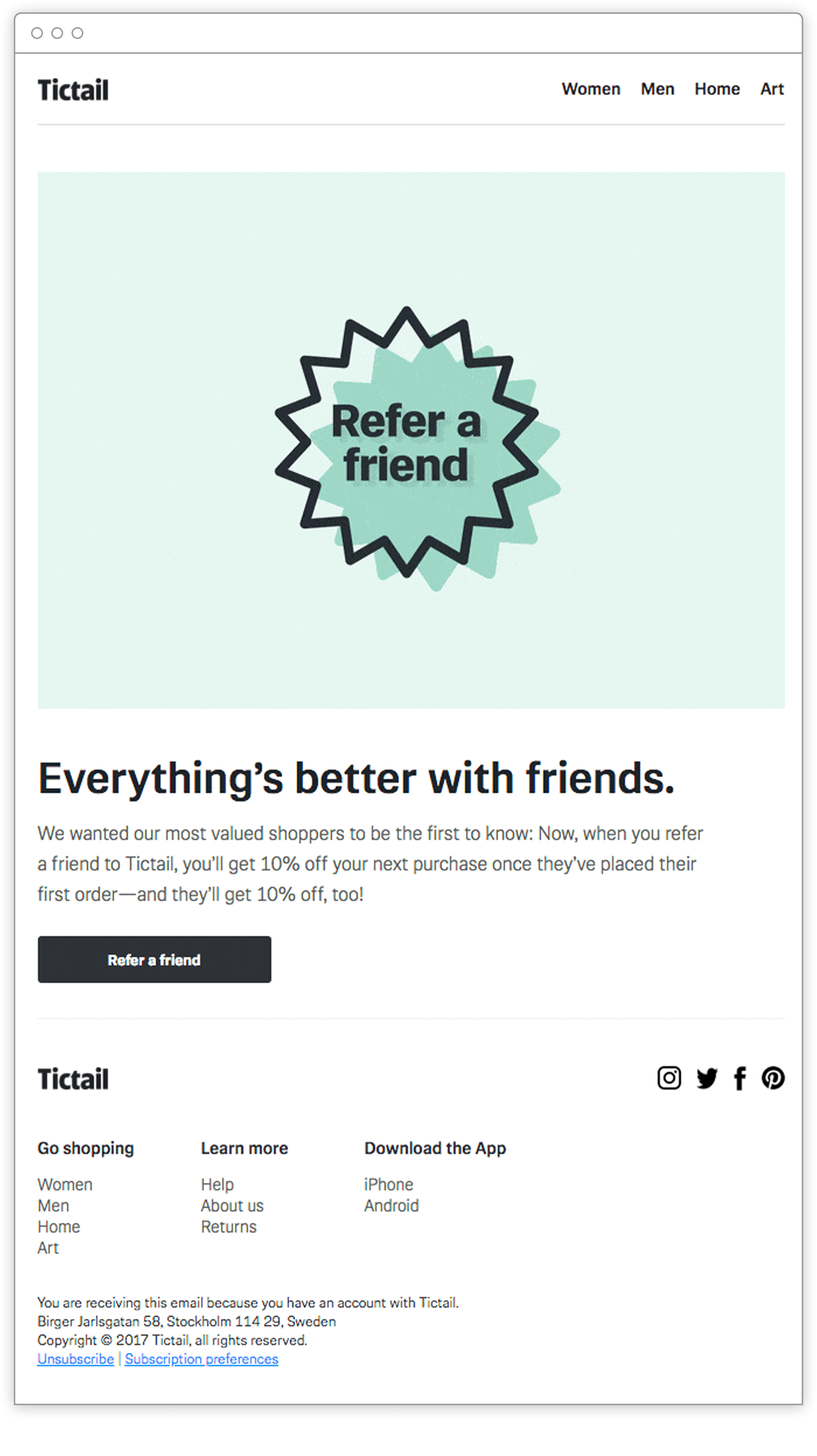 A lot of your work empowering this group of engaged subscribers is in writing compelling copy. Even if you’re not offering something extremely unique to this group of people, put your copy through the lens of customer appreciation. Making them feel valued will go a long way, especially as you invite them to take next steps in promoting your brand.
