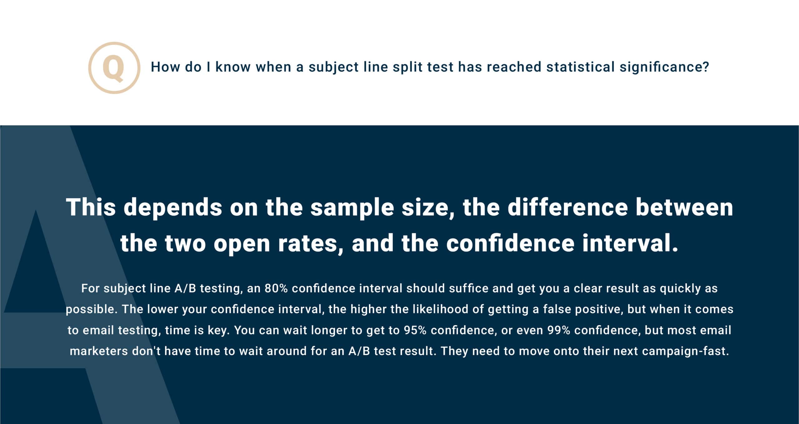 Once your test reaches statistical significance, roll out the champion subject line to the rest of your list. Try to reduce the number of variables in play by sending your subject line tests and the champion on the same day or at the same time of day.