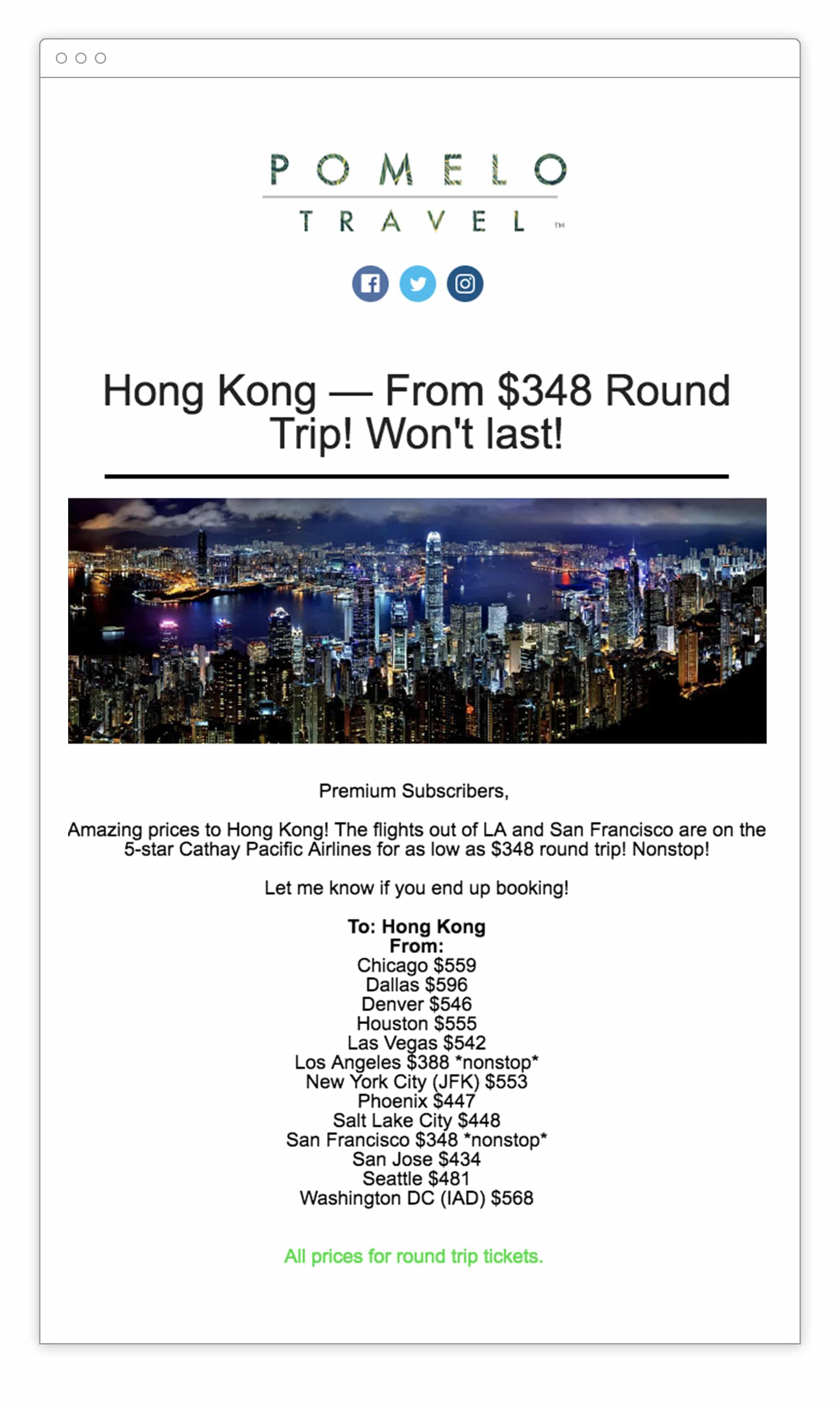 Pomelo Travel uses segmentation to send flight deals from subscribers’ home cities: