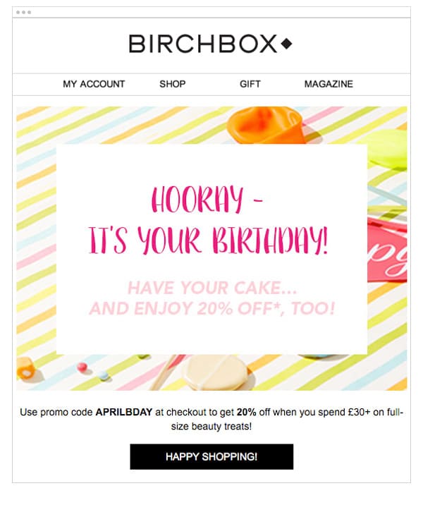 Here’s a great example from Birchbox: