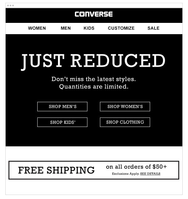 The body of the email keeps a subscriber moving through the lines of your message. Take a look at the body of this email from Converse: