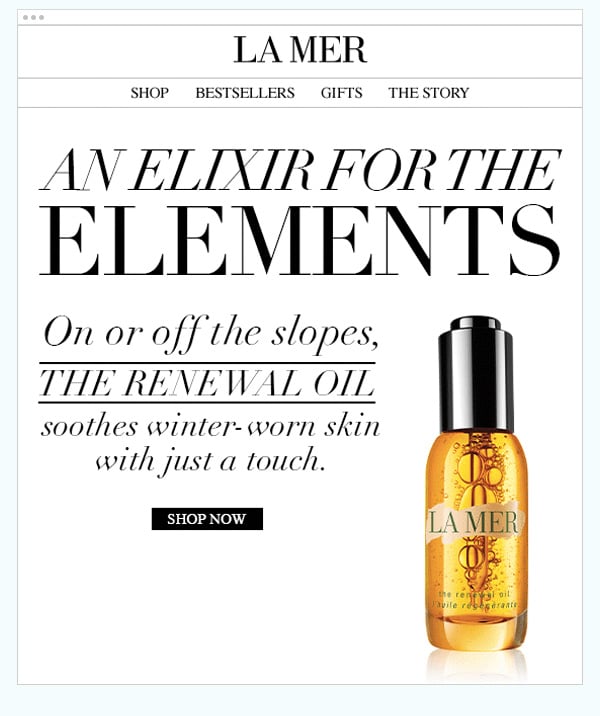 In the example from La Mer, the call to action is the black “Shop Now” button.