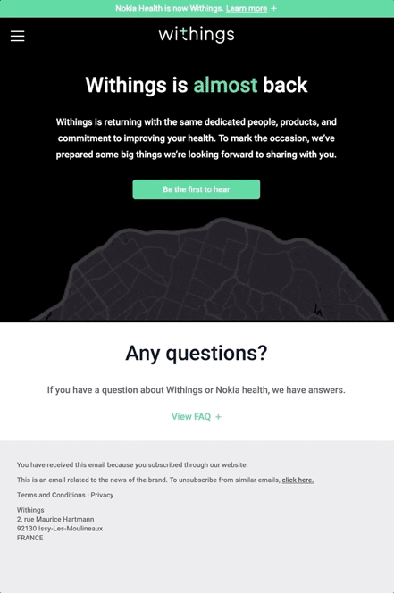 Mobile compatibility is now mandatory if you want to achieve a flawless presentation of your message. This year, strive to ensure that your design and your content display perfectly on every device, like this one from Withings: