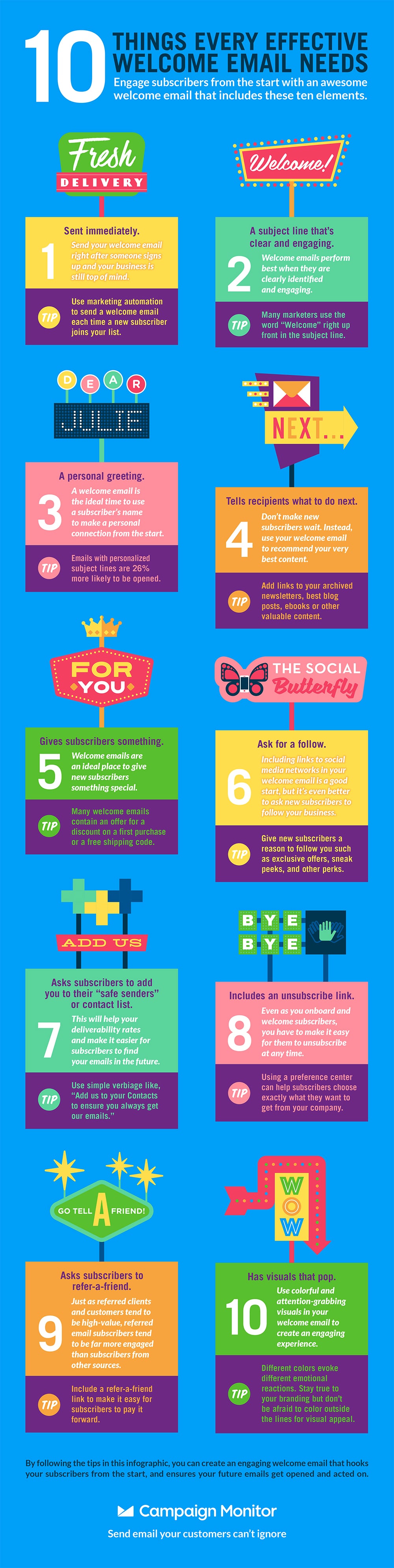 By following the tips in this infographic, you can create an engaging welcome email that hooks your subscribers from the start, and ensures your future emails get opened and acted on. If you’re ready to start creating your own great welcome email, try the following: