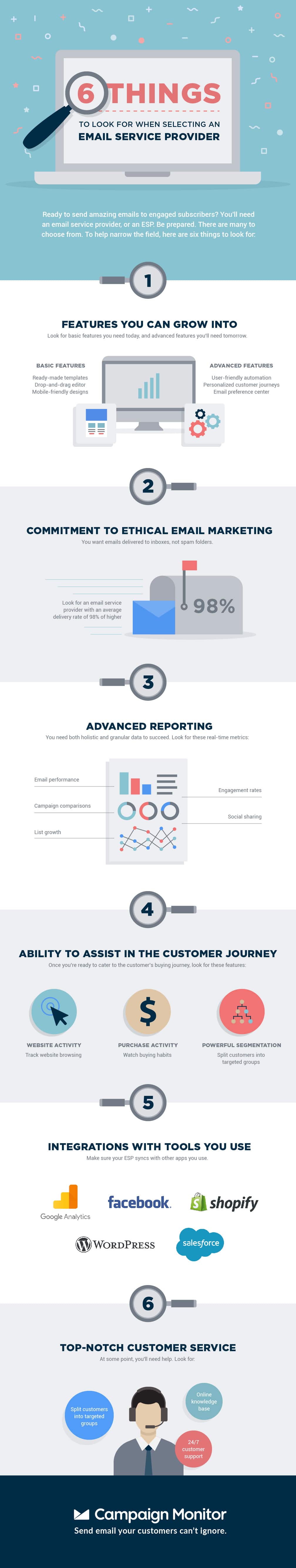 Resources Hub » Infographics » 6 Things to Look for When Selecting an Email Service Provider