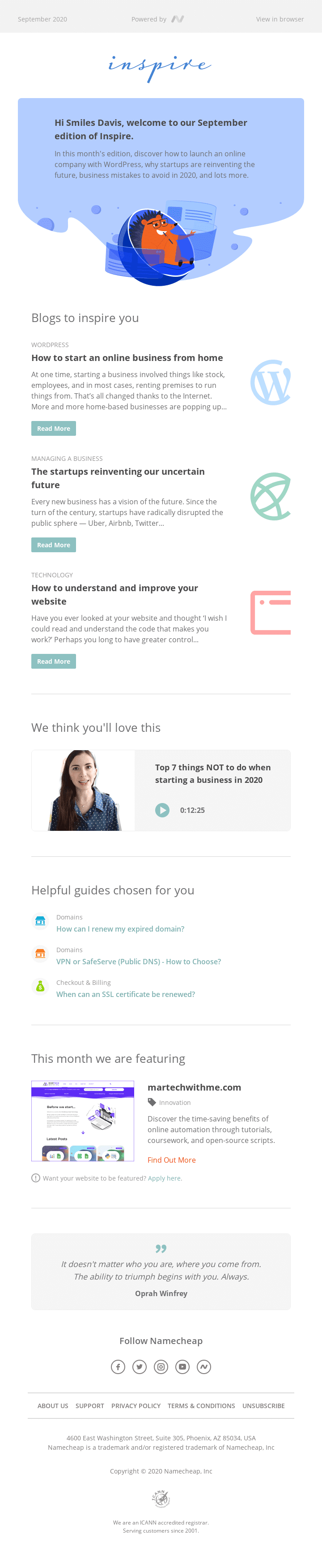 This email from Inspire shares a blog roundup with its readers. The brief summary of each blog intrigues the reader to click and read the full post.