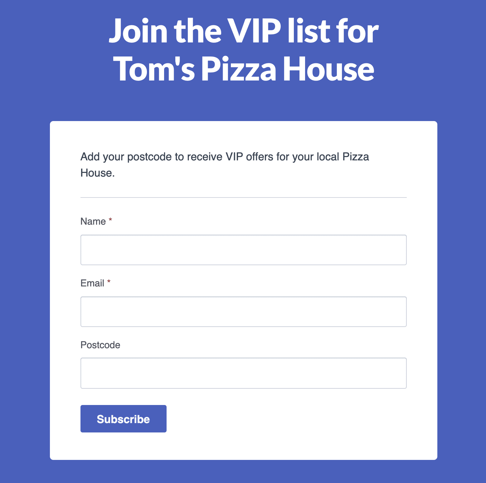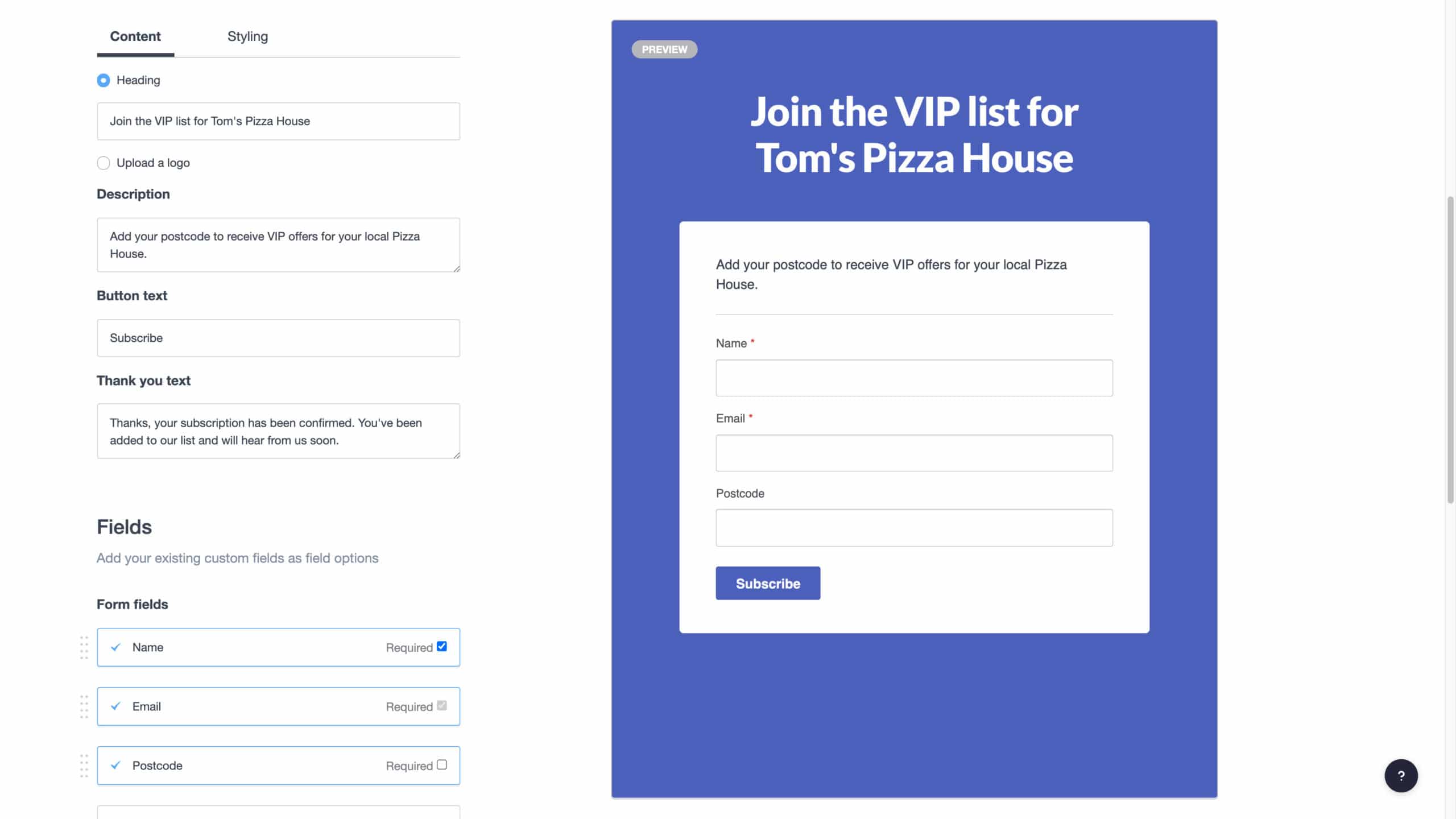 For new subscribers, that could look like including a location field in the signup form on your website. That way, subscribers have to include it to sign up. Or, for existing subscribers, you could send a re-engagement email prompting them to give you that information.
