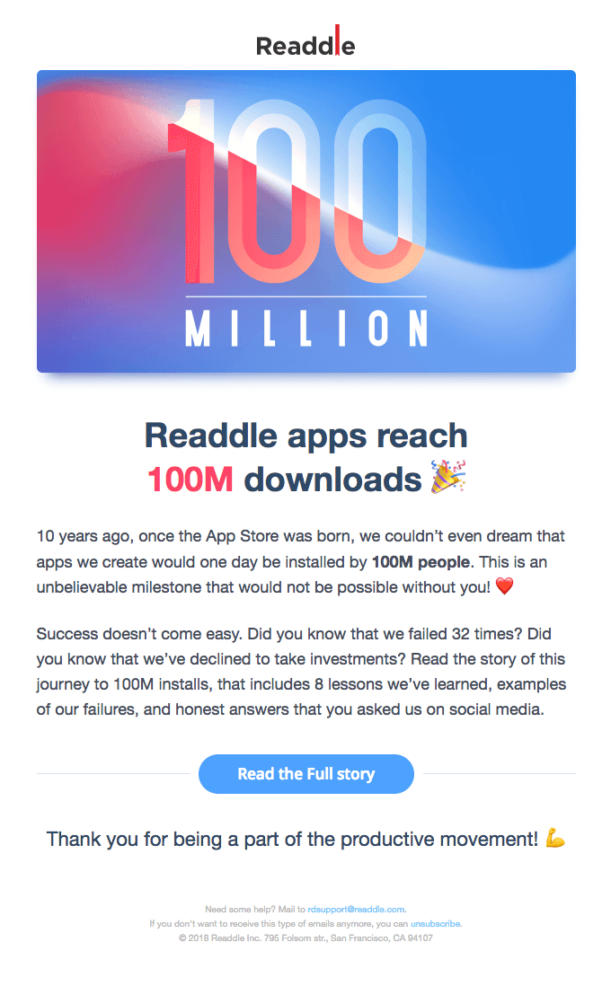 After the email has made your pitch to the reader, the CTA prompts them to respond. As for what this response is, it depends on the nature of your email, but it could be clicking a link, taking a survey, or sharing the email with a friend.