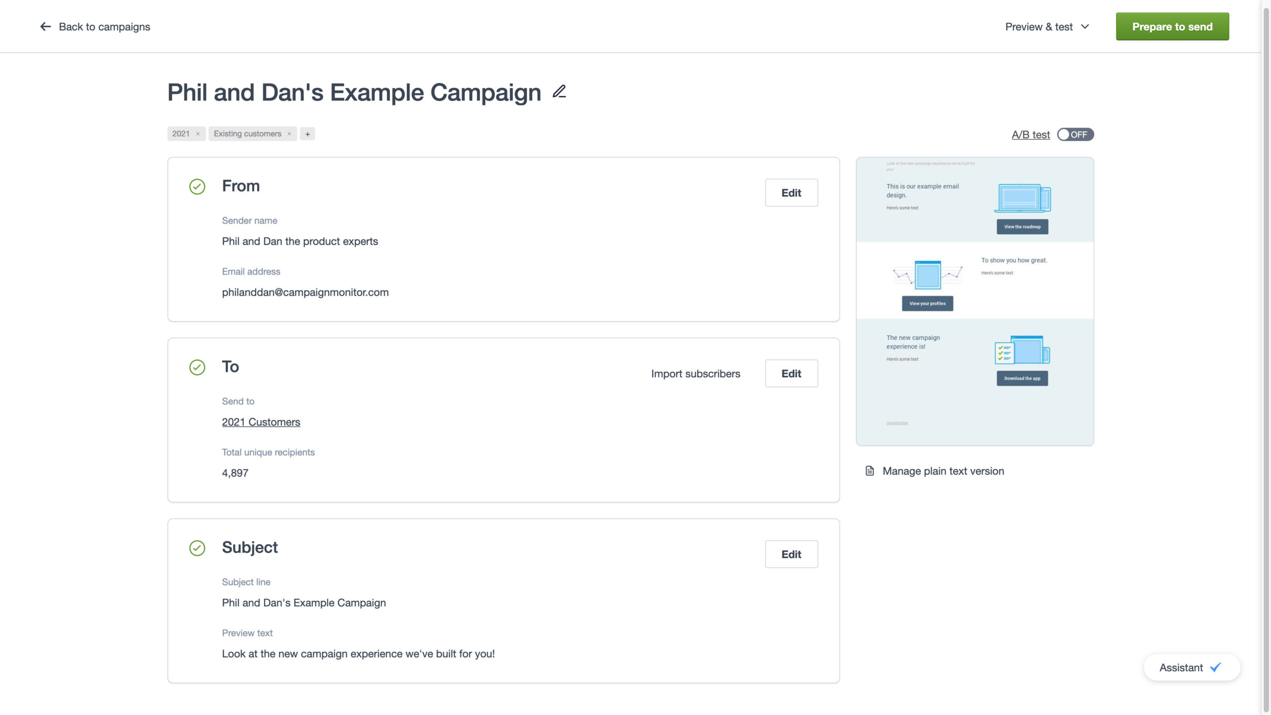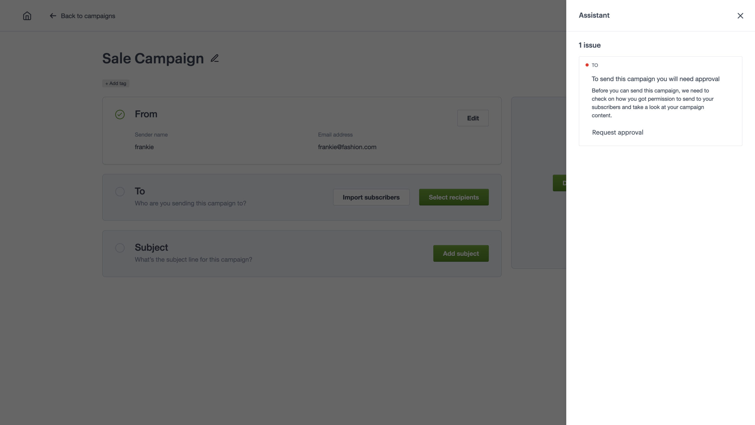 That’s why we built an Assistant to be your helping hand. The Assistant will provide useful tips to help you complete your campaigns. So, if there are errors in your imported HTML, or you need approval before sending a campaign, your Assistant is here to remind you. We’re still working on the Assistant, so you’ll see more features added to it in the coming months.