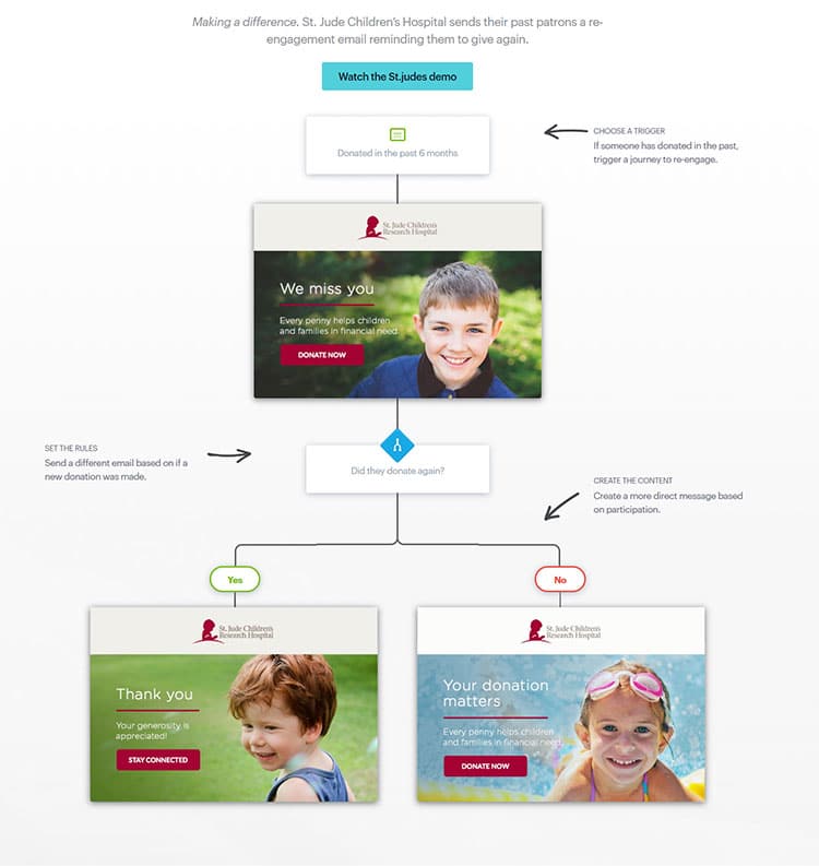 It’d also be worthwhile to put your effort towards developing personalized subscriber journeys and automated campaigns. Instead of just asking for donations, these campaigns will help you develop a long-term relationship with your audience and build trust.