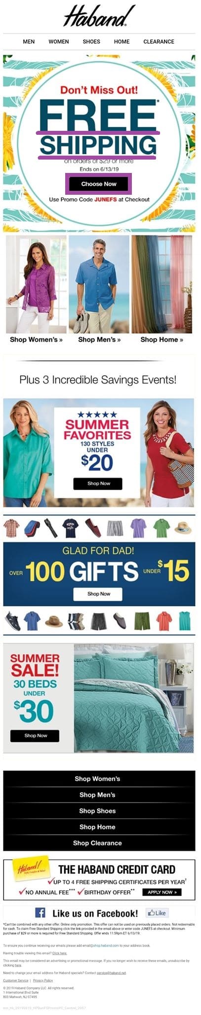 Right away, it’s clear to readers that there’s free shipping on orders of $29 or more, and the brand doesn’t want consumers to “miss out.” The call to action? “Choose now!”