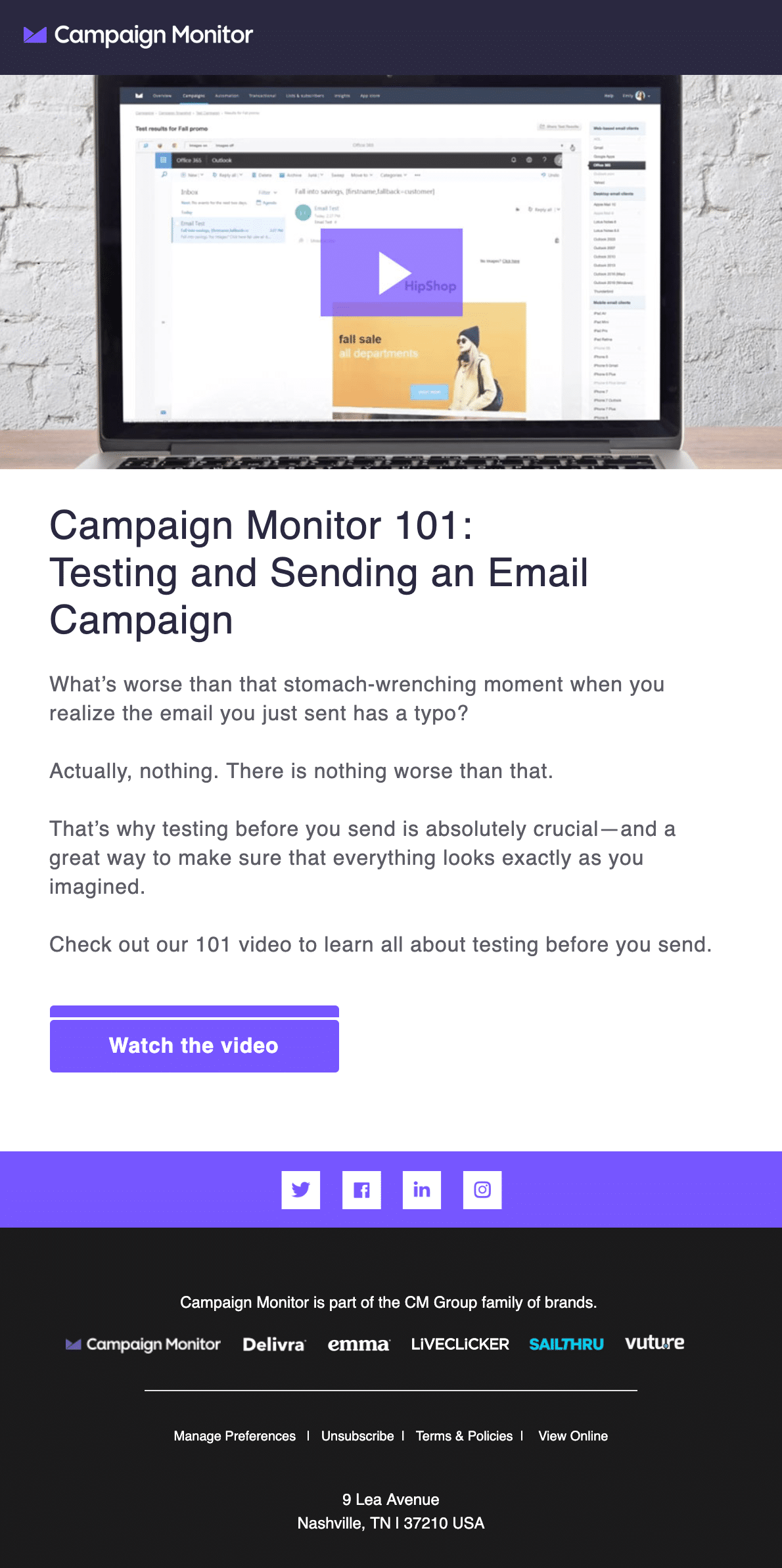 Now that you understand the importance of video, you can look for new ways to work it into your email marketing strategy. Remember that while you may be able to embed a video into your campaign through the Campaign Monitor email builder, that doesn’t mean it will play in every subscriber’s email.
