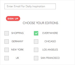 Refinery29 accomplishes this goal through targeted signup forms. When someone signs up for a daily newsletter, Refinery29 asks them to choose their editions. People in Los Angeles will receive relevant content, particular to their local area.